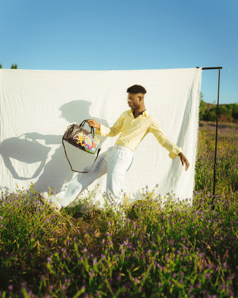 Discover the Sprayground Astromane Sharks in Space Mini Duffle
