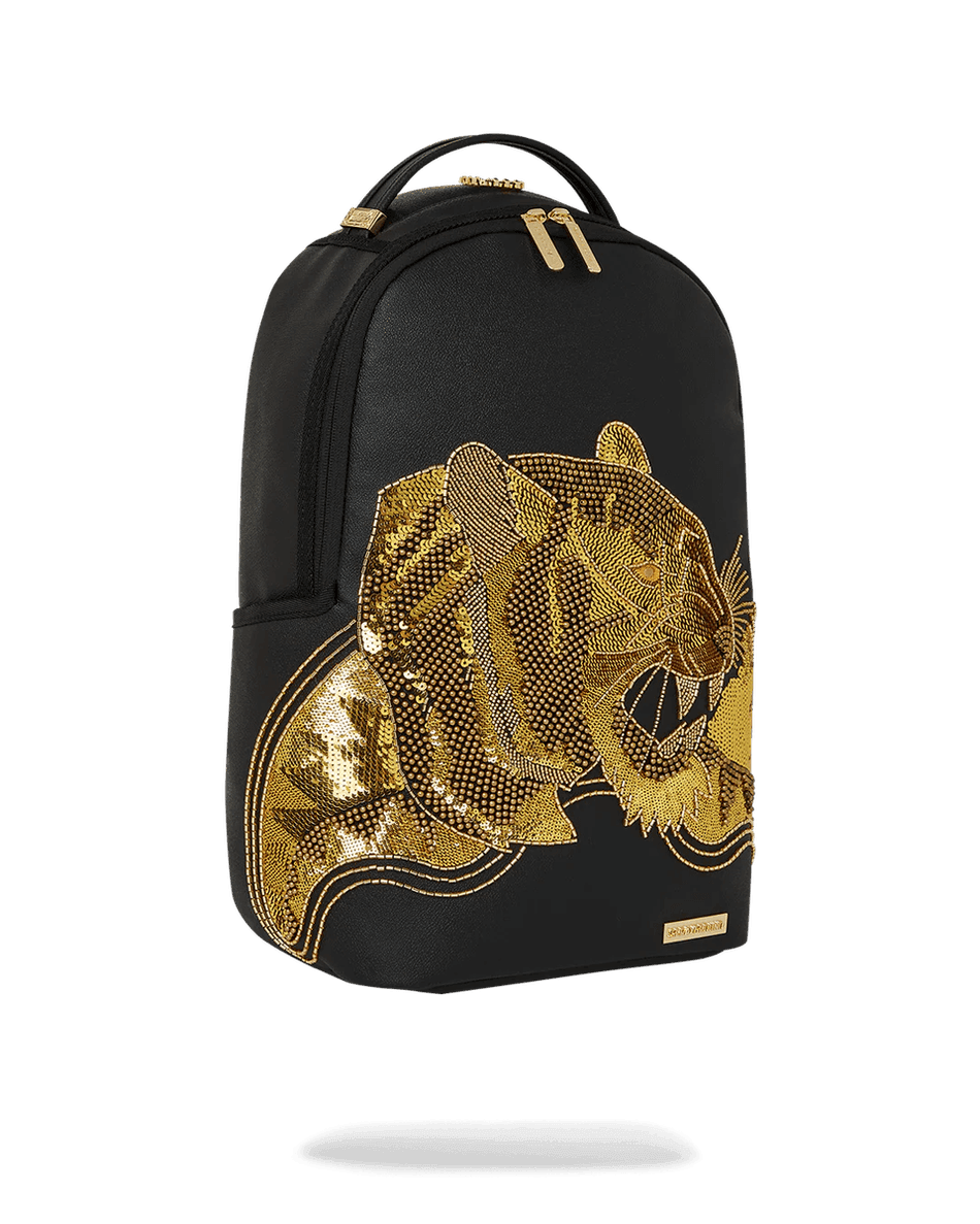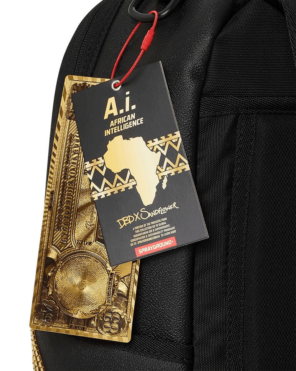 løft Din Stil Med sprayground A.i.8 African Intelligence Gilded Leopard Rygsæk. Denne Fantastiske Rygsæk, Født Fra Samarbejdet Mellem African Intelligence Og Sprayground, Tiltrækker Ikke Kun Opmærksomhed, Men Bidrager Også Til Global Humanitær Hjælp Og Bevarelsesprogrammer. Skab Opmærksomhed Med En Unik Blanding Af Mode Og Formål.