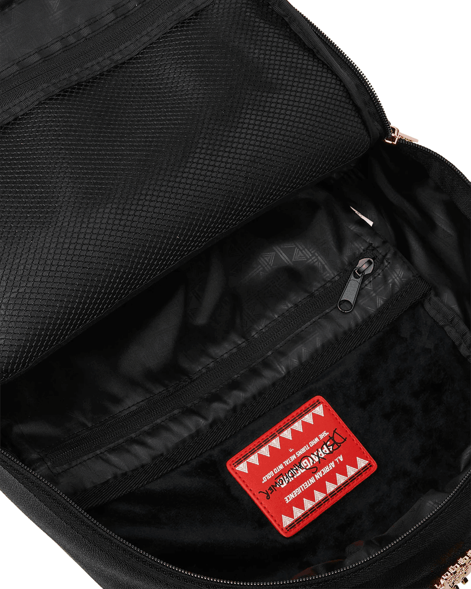 sprayground A.i.8 African Intelligence Gilded Leopard Rygsæk Er Ikke Bare En Taske; Det Er En Erklæring. Med Sine Iøjnefaldende Guldudsmykninger Er Denne Rygsæk Perfekt Til Studerende, Rejsende Og Modeentusiaster. Den Forreste Lynlåslomme Og Sidelommerne Giver Nem Adgang Til Det Nødvendige, Mens Den Lynlåslukkede Opbevaringslomme Og Velour Solbrillelommen Holder Dine Ting Sikre Og Beskyttede.