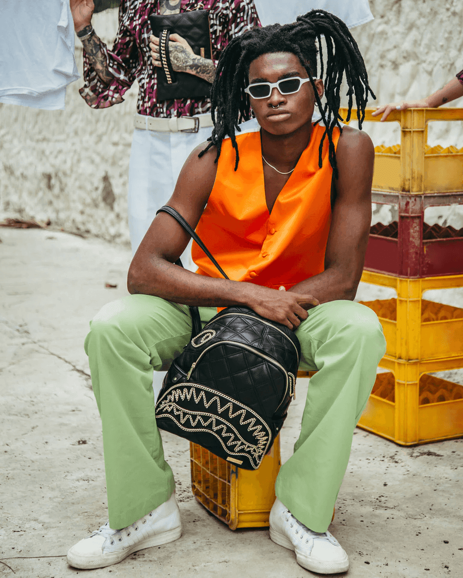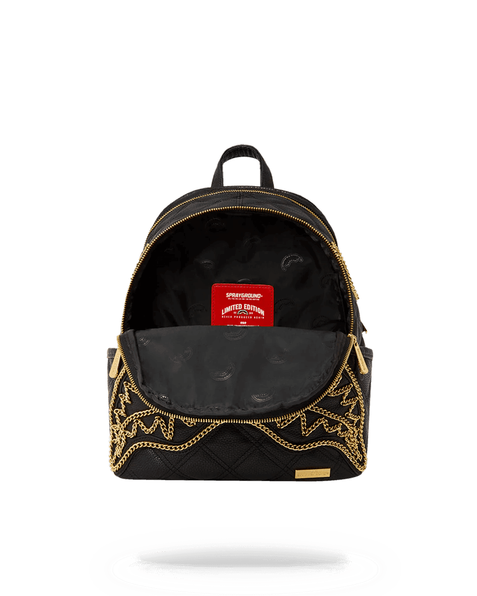 Sprayground Noir Quilt Gold Chain Shark Savage Rucksack 99000
