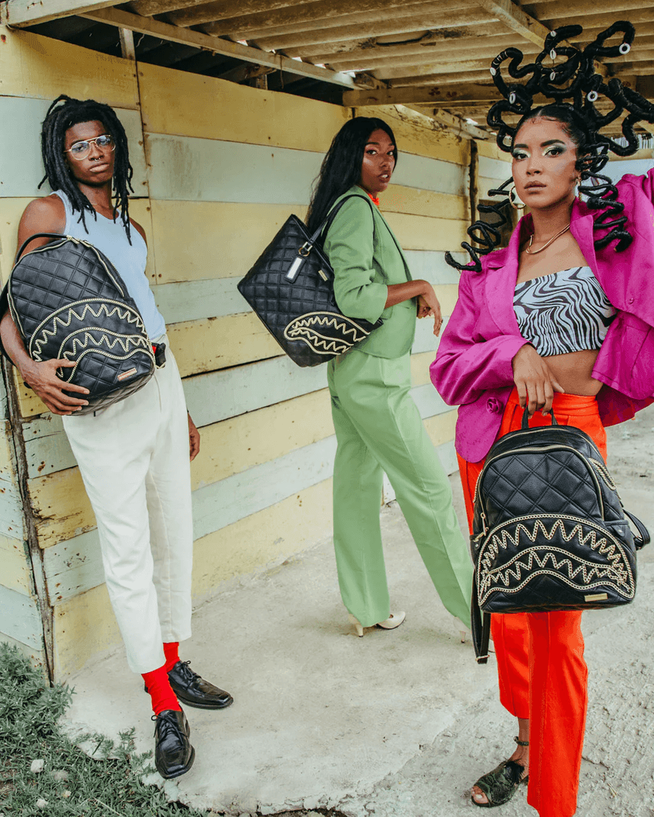 Entfessle Deinen Stil Mit Dem Sprayground Noir Quilt Gold Chain Shark Savage Backpack 99000