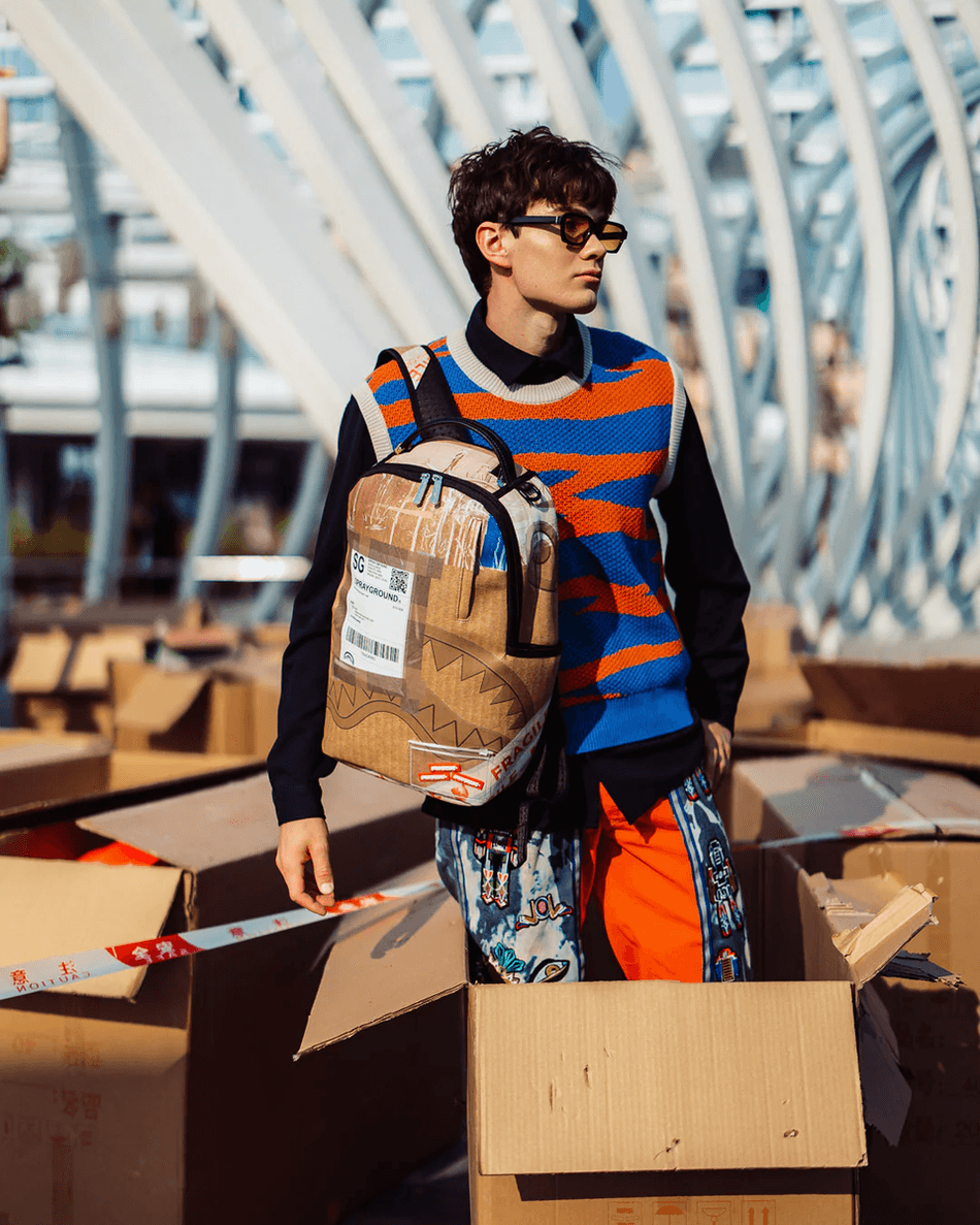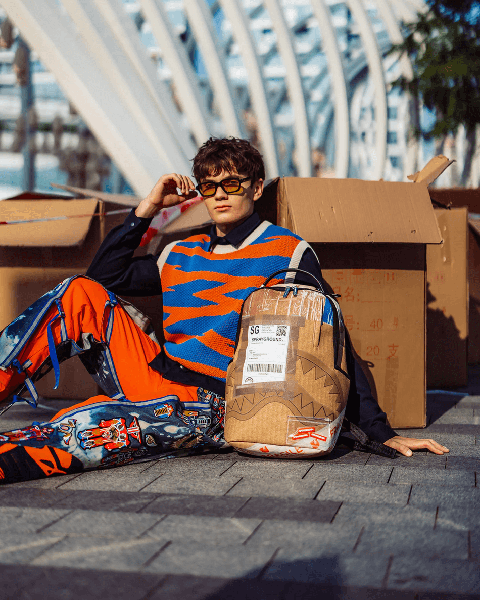eleva Tu Estilo De Viaje Con La mochila De Entrega Nocturna Sprayground 99000. Esta Mochila única, Diseñada Para Parecer Una Caja Empacada, Combina Moda Y Funcionalidad, Convirtiéndola En El Accesorio Perfecto Para Tu Estilo De Vida En Movimiento.