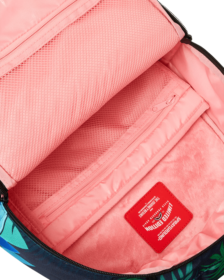 la mochila Sprayground Pink Panther Heavy Lies The Crown 99000 Combina Un Diseño Juguetón Con Características Prácticas. Las Cremalleras Doradas Con Herrajes Metálicos Añaden Un Toque De Lujo, Mientras Que La Placa Metálica "sprayground Authentic" Significa Calidad. El Compartimento Separado De Terciopelo Para Gafas De Sol Protege Tu Eyewear, Haciendo De Esta Mochila Un Artículo Imprescindible Para Quienes Están En Movimiento.
