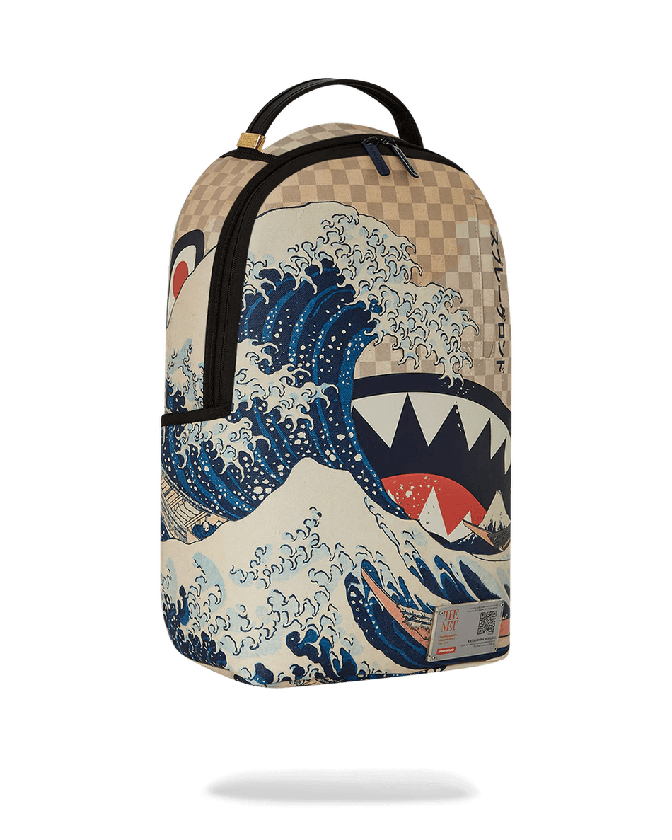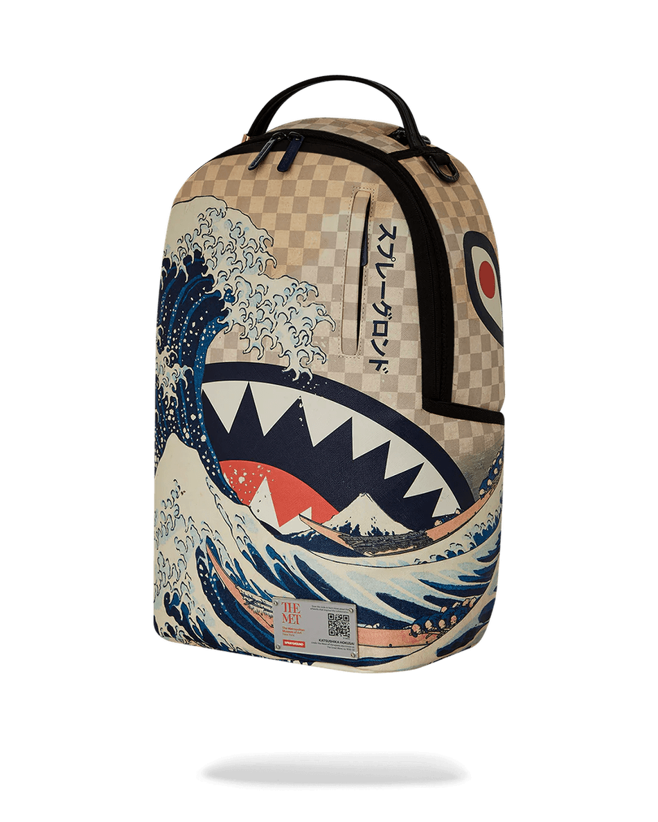 vapauta Tyylisi Sprayground The Met Hokusai Great Wave Repulla 99000, Jossa Taide Kohtaa Toiminnallisuuden. Tämä Silmiinpistävä Reppu Sisältää Spraygroundin Ikonisen Hain Suun Muotoilun Yhdessä Katsushika Hokusain Legendaarisen Puuleikkauksen, Suuren Aallon, Kanssa. Täydellinen Taiteen Ystäville Ja Muotitietoille, Se On Lausuntokappale, Joka Varmasti Kääntää Katseita.