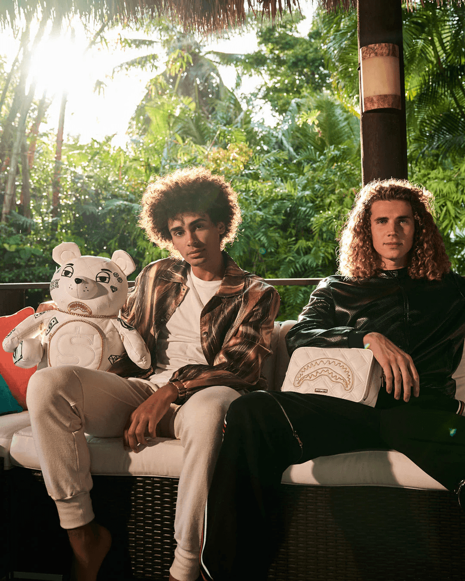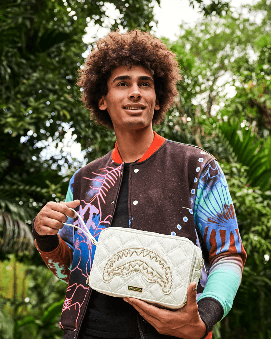scopri Il Beauty Case Sprayground Riviera Le Blanc Gold Chain Shark