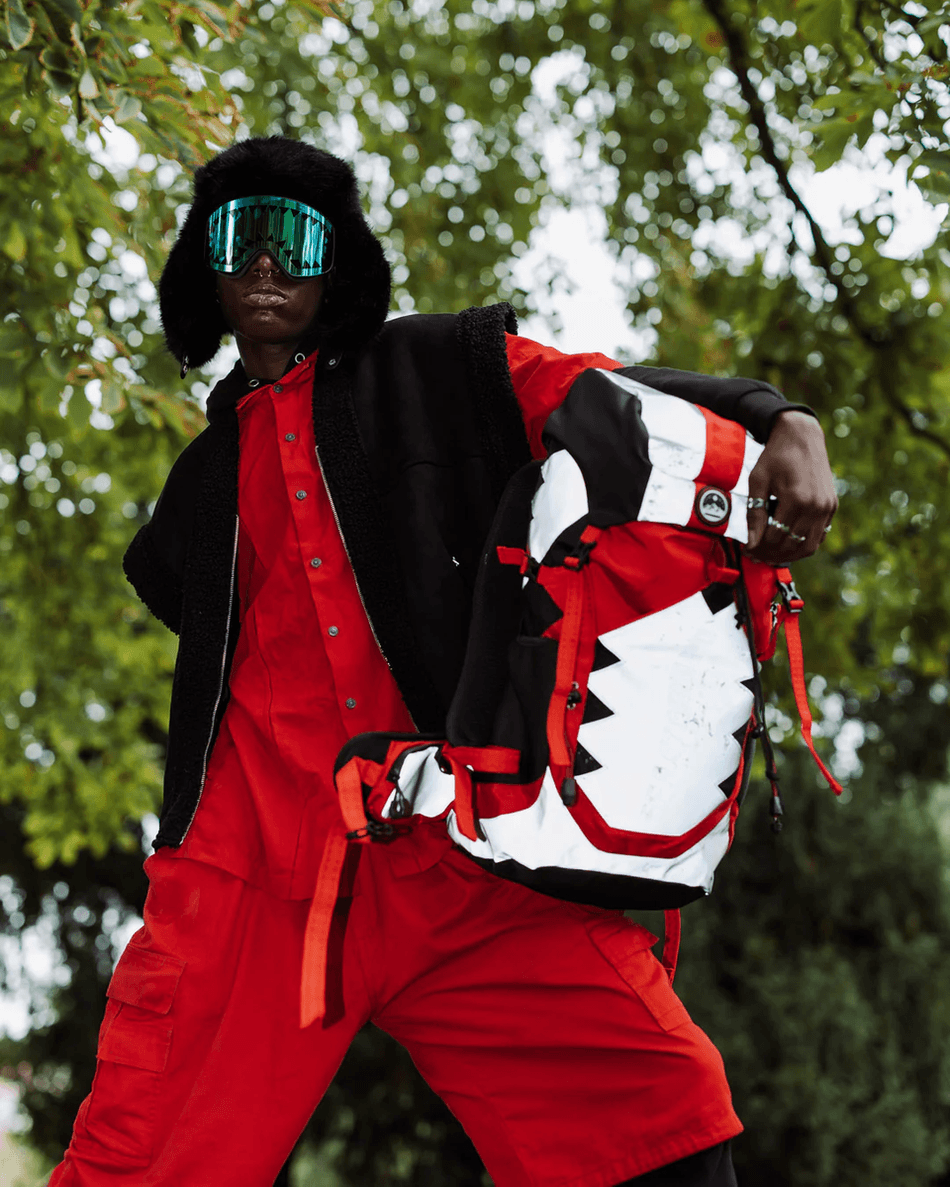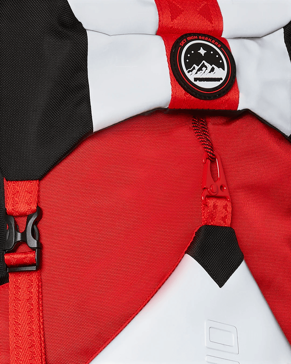 sprayground Sky High Seekers Arctic Global Trek Camper Ryggsekk 99000 Er Mer Enn Bare En Ryggsekk; Det Er En Uttalelse. Med Sin Unike Debosserte Sprayground Tekst Og Slående Røde Snordetaljer, Skiller Den Seg Ut Uansett Hvor Du Går. Innsiden Har Flere Lommer, Inkludert En Sovepose-lomme Og To Flaske-lommer, Noe Som Gjør Den Ideell For Dagsturer Eller Helgeturer.