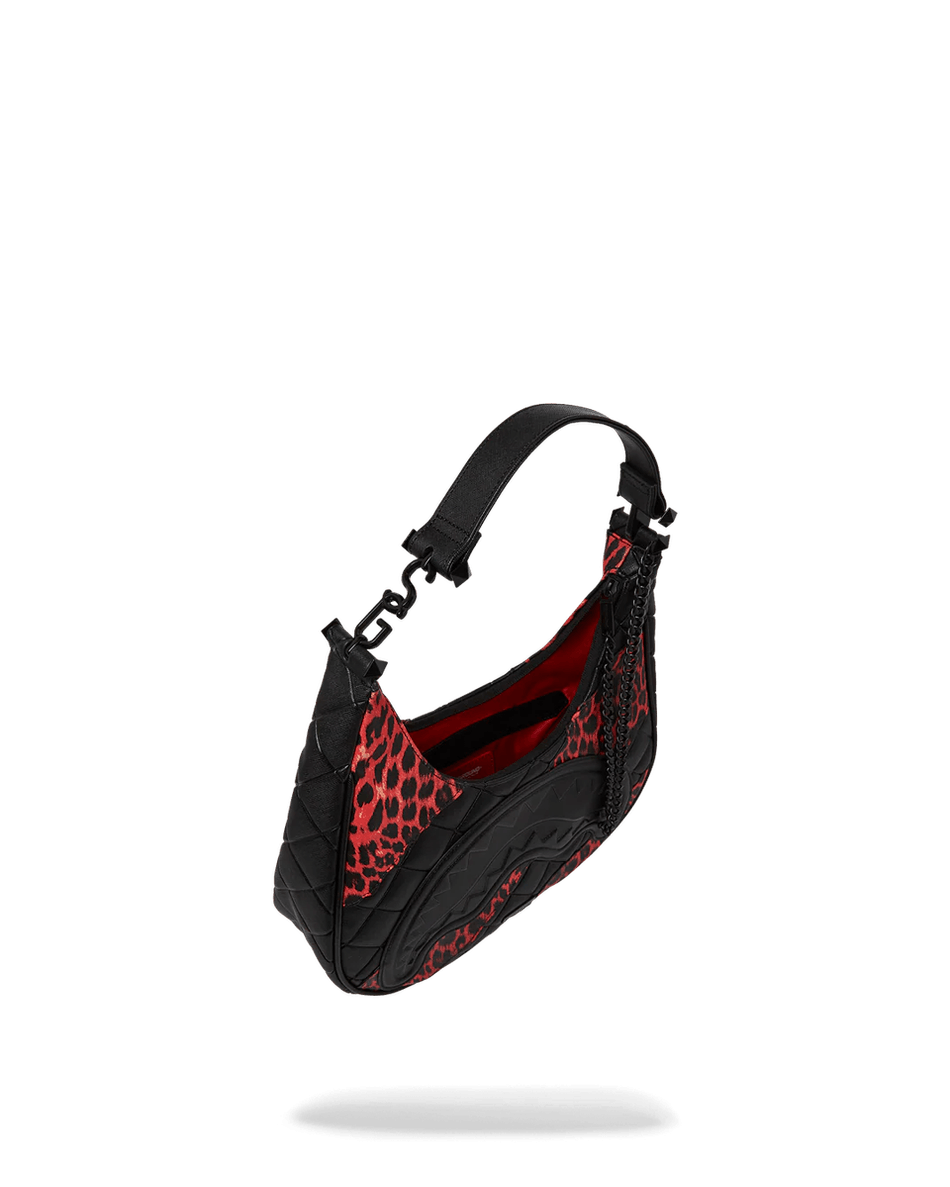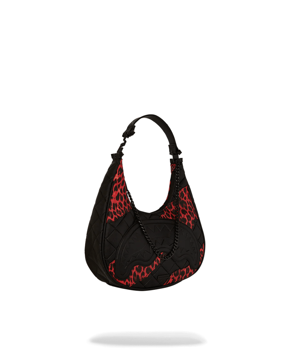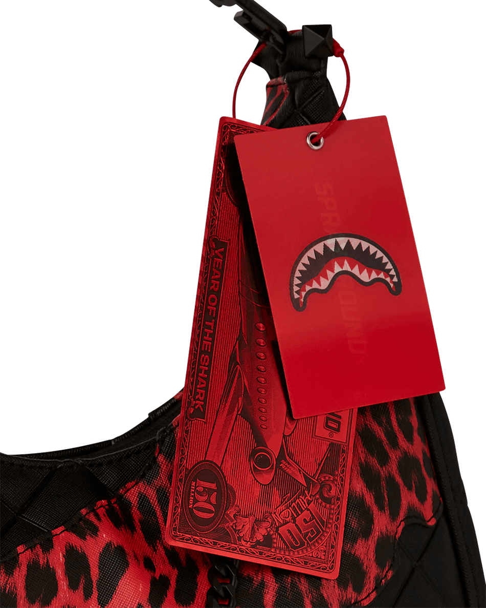geanta De Umăr Sprayground Night Spot Vice 99000 Este Concepută Pentru Cei îndrăzneți și Eleganți. Exteriorul Său Matlasat și Accentul Atrăgător De Leopard O Fac O Declarație De Modă Care Iese în Evidență în Orice Mulțime. Detaliul Embossat în Formă De Bot De Rechin Adaugă O Notă Edgy, în Timp Ce Mânerul Din Piele Vegană și Lanțul De Metal Oferă Durabilitate și Sofisticare.