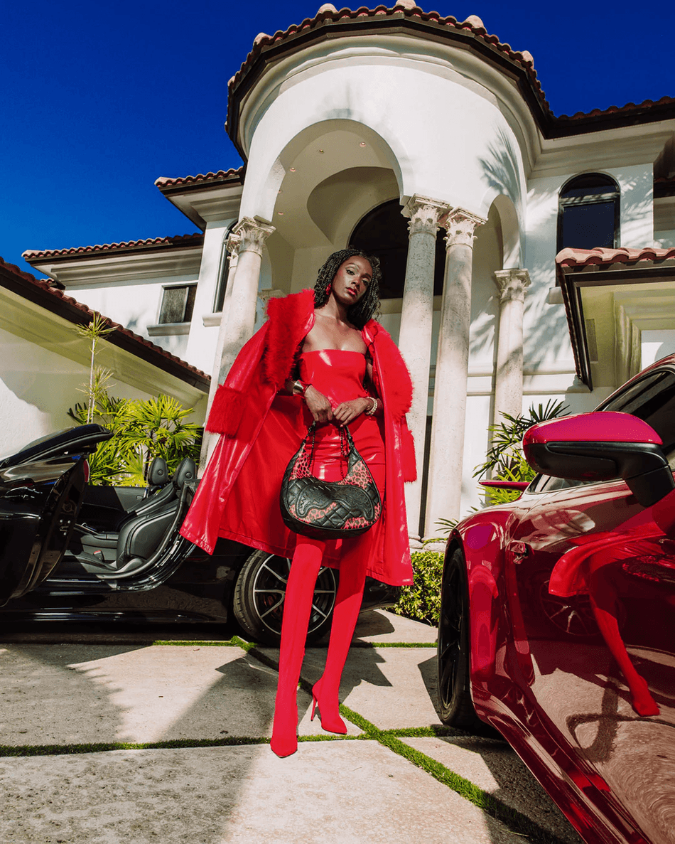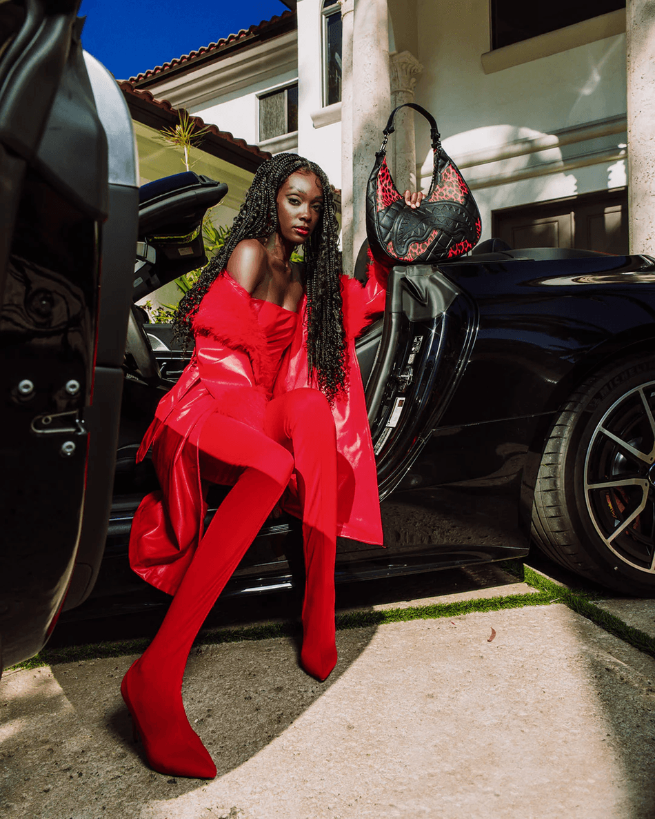 • design Elegant: Piele Vegană Matlasată Cu O Ruptură De Leopard Izbitoare și Detalii Embossate în Formă De Bot De Rechin.