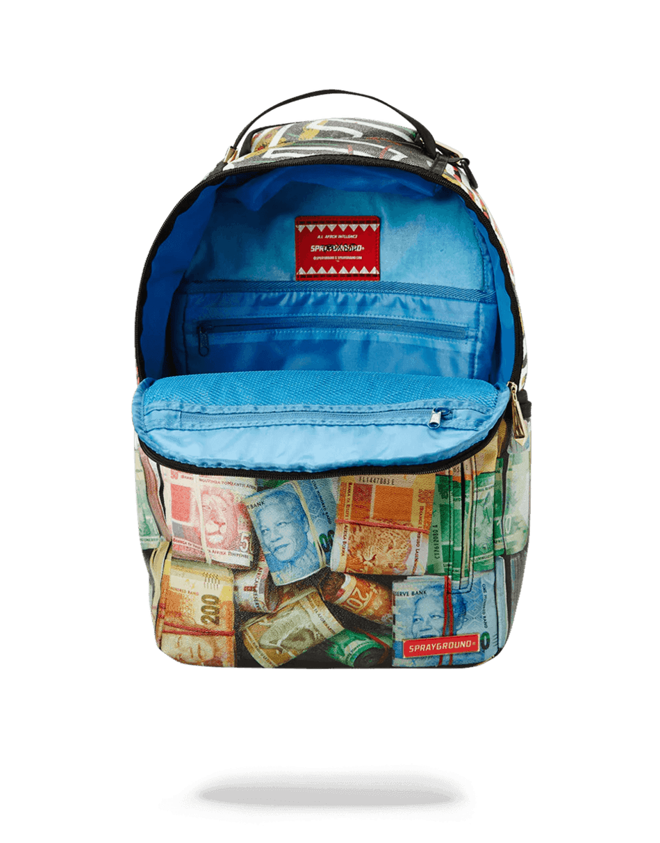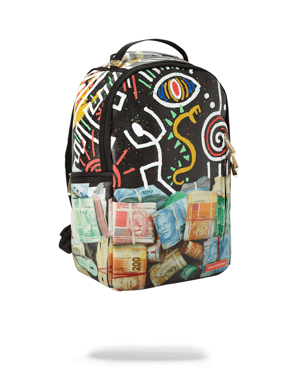 рюкзак Sprayground Mandela Rolls 99000 сочетает моду с функциональностью. с отдельным отсеком для ноутбука и роскошным карманом для солнцезащитных очков из велюра, он идеально подходит для студентов, профессионалов или любого, кто в пути. яркий дизайн отражает королевскую сущность, гордость и красоту африки, делая его не только рюкзаком, но и началом разговора.