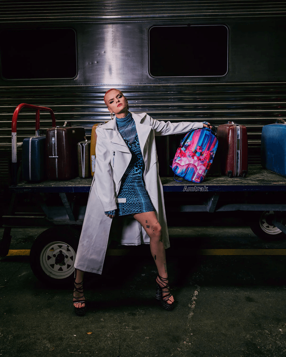 - стильные детали: отделка золотыми молниями, металлической фурнитурой и отличительным значком "sprayground Authentic".