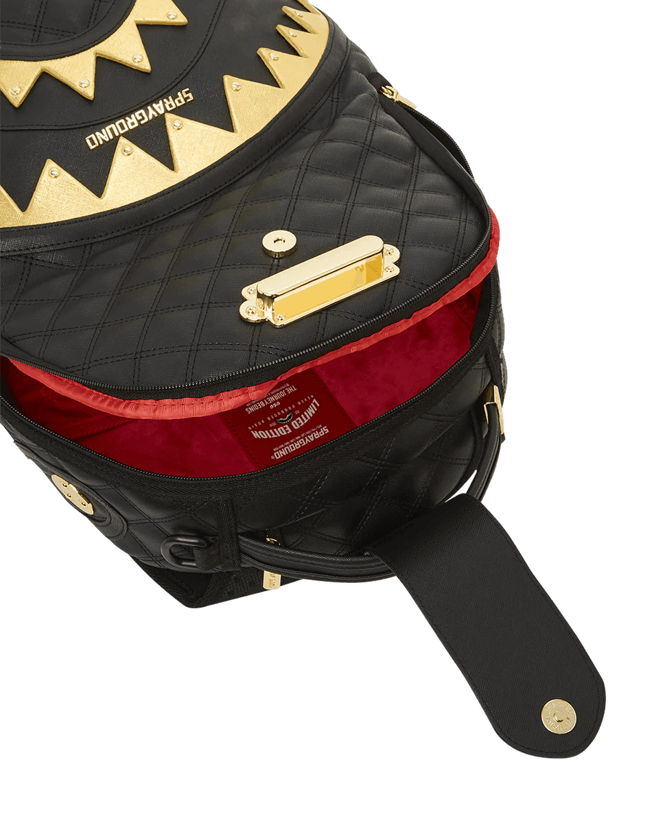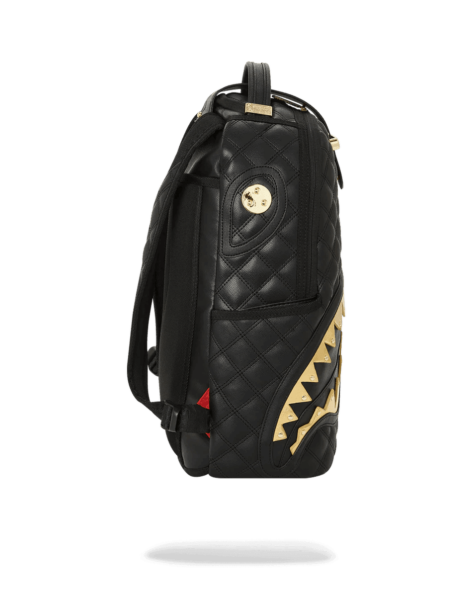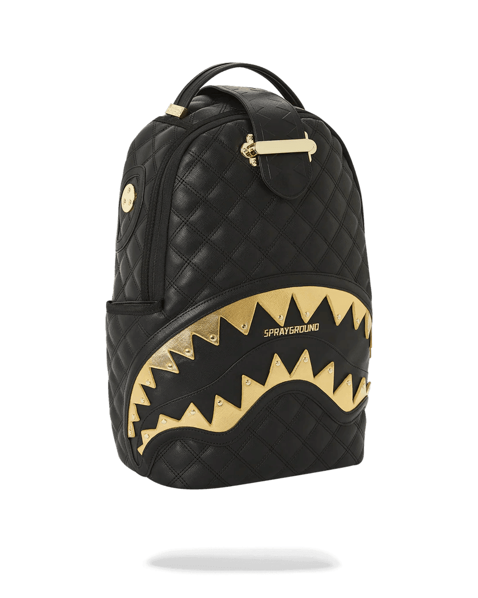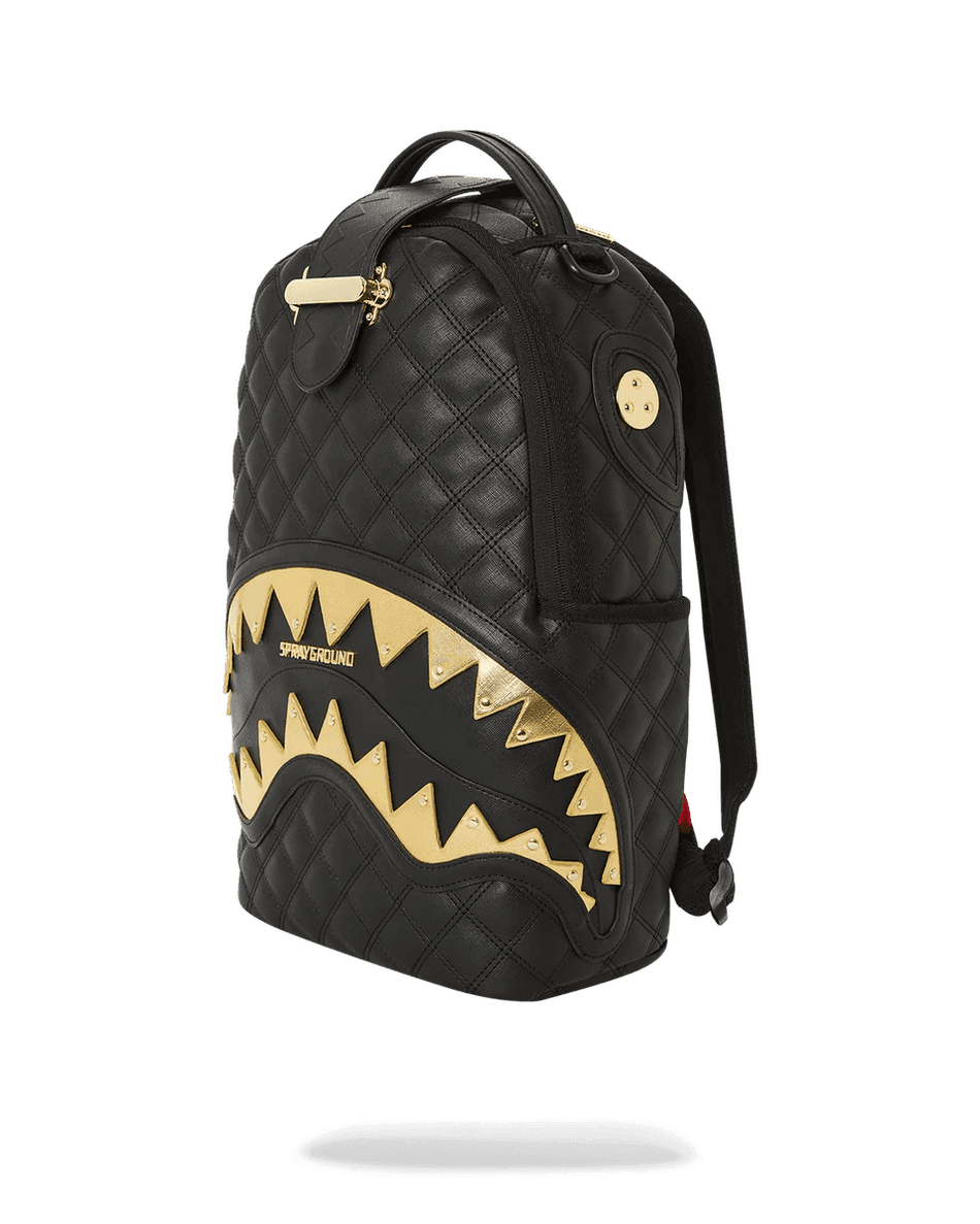 Discover the perfect blend of luxury and functionality with the Sprayground 24K Geneva Backpack (DLXV) 99000. This sophisticated backpack features a stunning quilted faux leather design that stands out with its metallic gold shark mouth accents and eye-catching nail head hardware. Whether you're headed to class, work, or a weekend getaway, this backpack delivers both style and convenience.