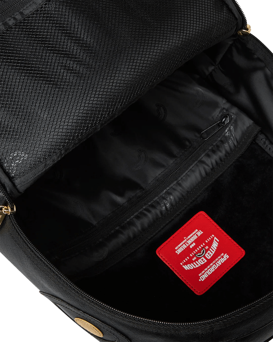 Don't miss out on the chance to own the Sprayground Gold and Black Racing Stripes Backpack 99000. Order yours today and experience the perfect blend of style and practicality!