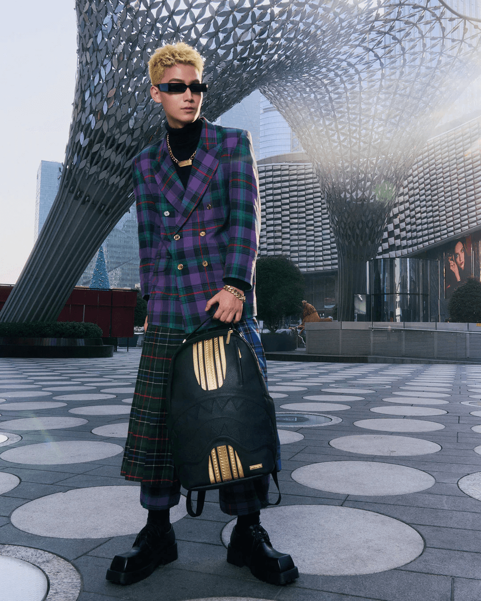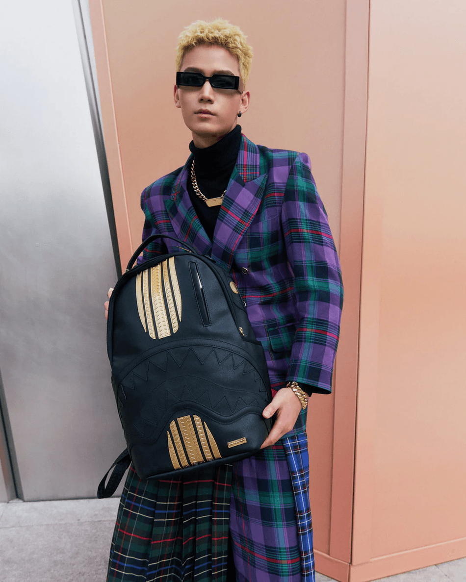 Introducing the Sprayground Gold and Black Racing Stripes Backpack 99000