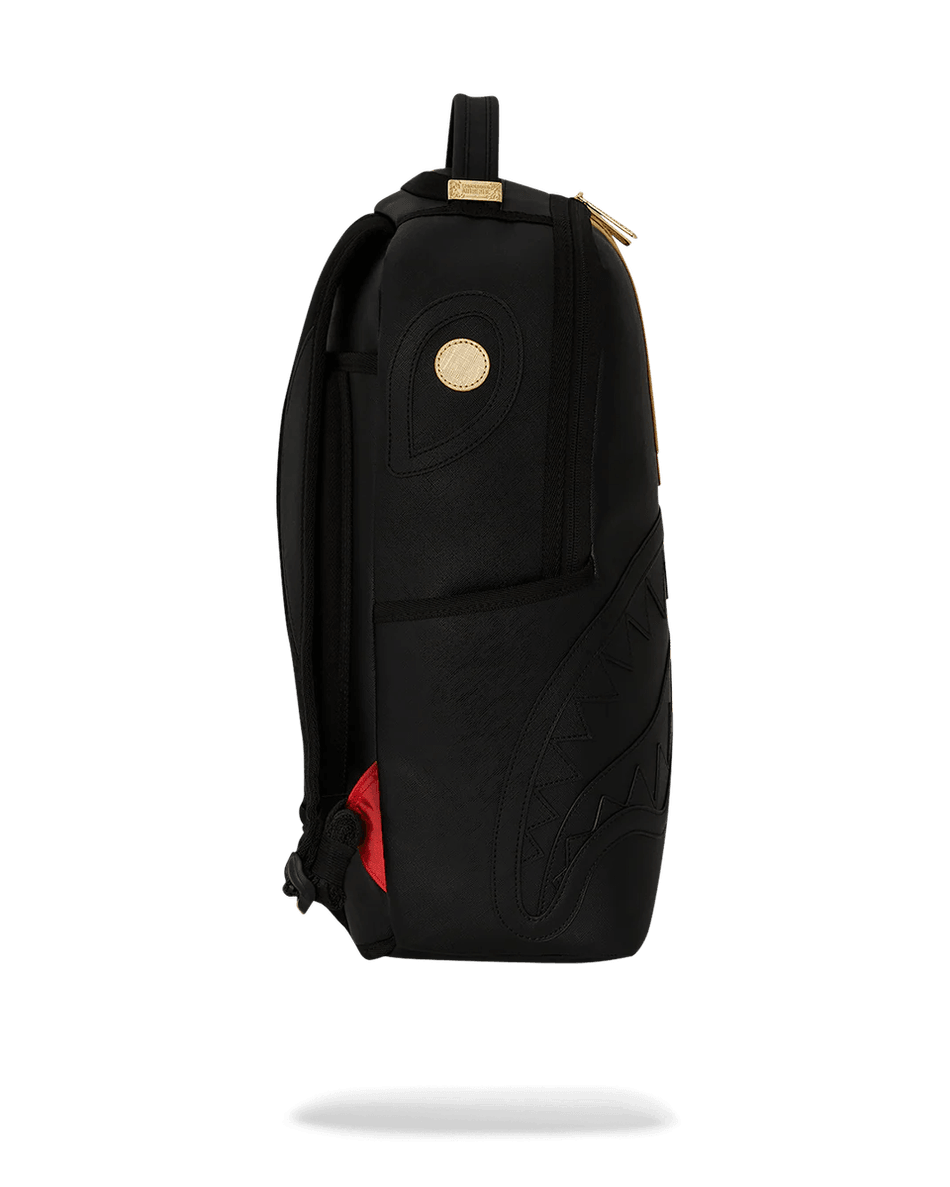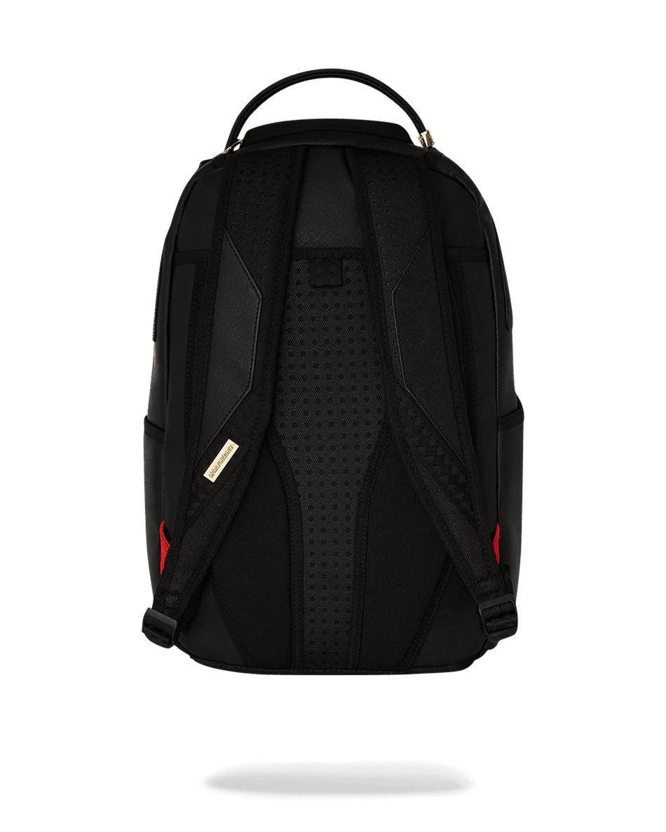 The Sprayground Gold and Black Racing Stripes Backpack 99000 is not just a bag; it's a statement piece. With its eye-catching gold zippers and metal hardware, this backpack stands out from the crowd. The water-resistant faux leather fabric ensures your belongings stay dry and protected, while the mesh organizer pocket helps keep everything in place. Whether you're heading to class or embarking on a weekend getaway, this backpack is designed to meet all your needs.