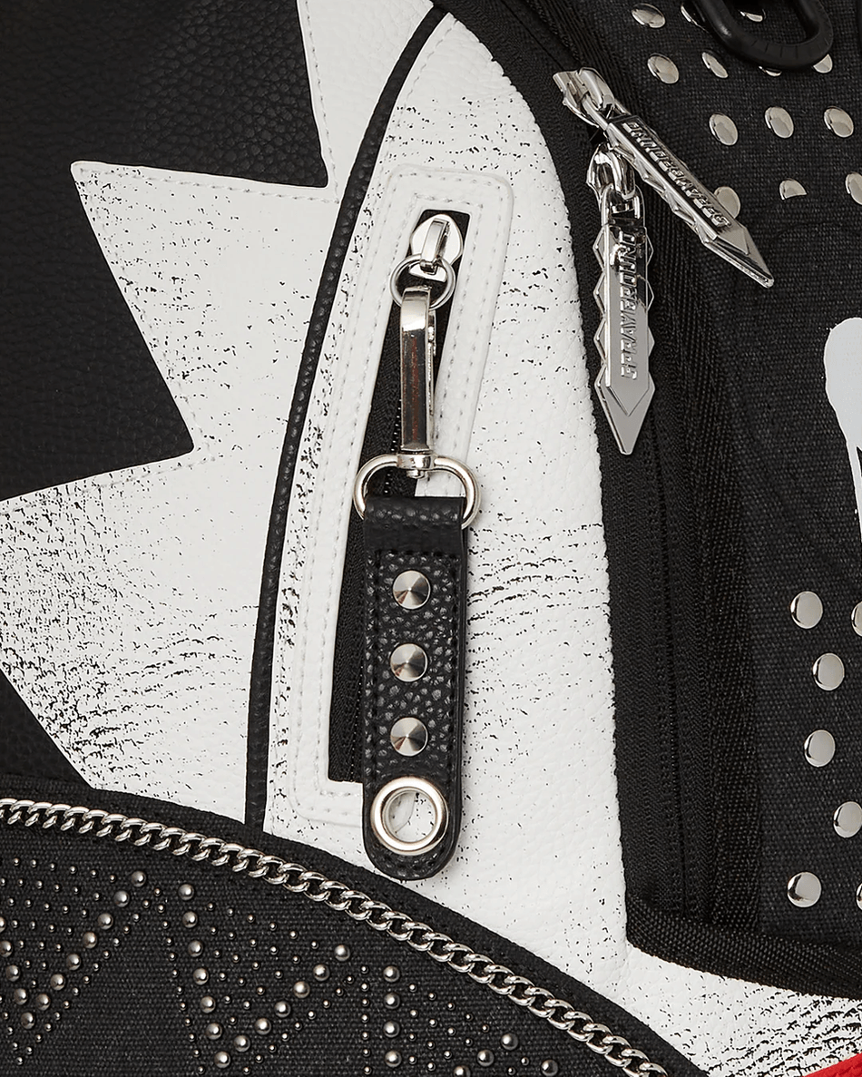With cut and sew detailing, studs, and safety pins, this backpack isn't just practical—it's a statement piece. Perfect for school, work, or a day out in the city, it brings a unique edge to any outfit.