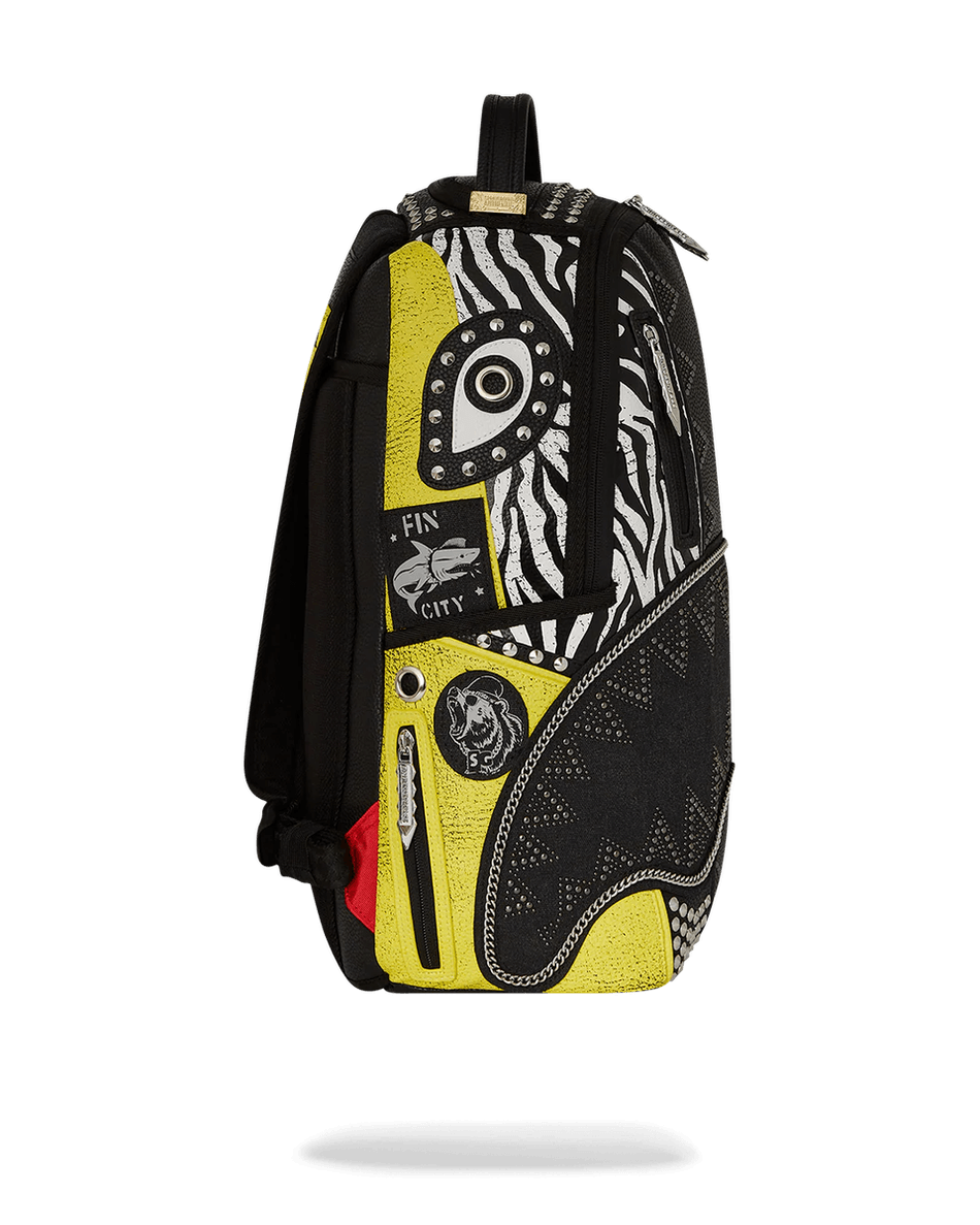 Elevate your style and functionality with the Sprayground SOHO SOUNDSYSTEM BACKPACK 99000. This unique backpack combines fashion and practicality, making it perfect for the urban explorer or the music enthusiast. Crafted from 100% faux leather, it features a striking mix of canvas and PVC materials that ensure durability and a standout look.