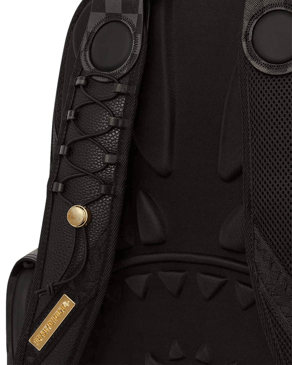 Designed for comfort, the ergonomic mesh back padding and adjustable straps ensure a perfect fit for every user. The eye-catching gold zippers and the metal "Sprayground Authentic" badge add a touch of luxury, making this backpack a standout accessory.