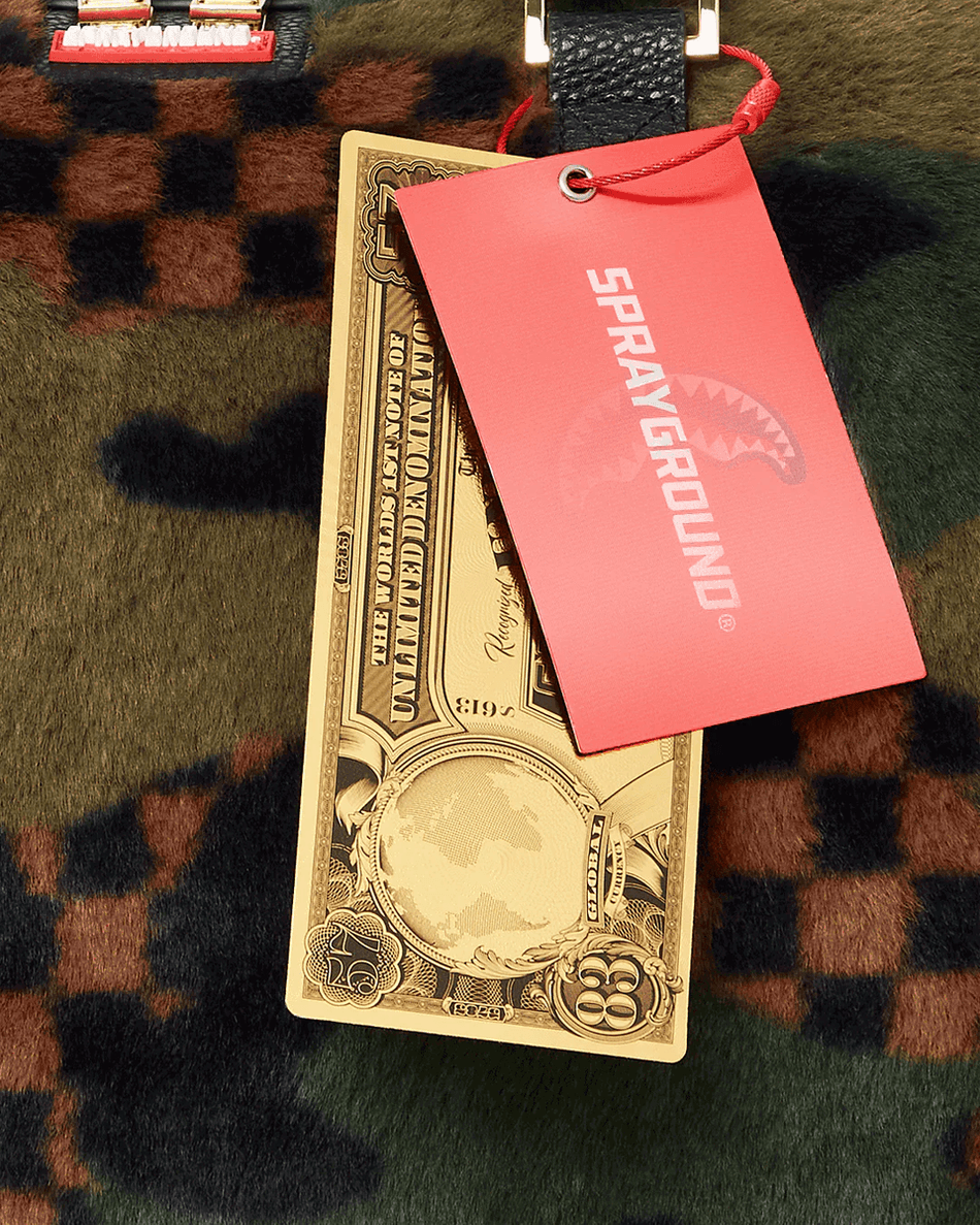 sprayground Big Sky Fur Shark Duffle 99000 Nije Samo Torba; To Je Komad Koji Se Ističe. Izrađena Sa Zapanjujućim Prilagođenim Kariranim/kamuflažnim Uzorkom, Ova Torba Je Dizajnirana Za One Koji žele Da Se Istaknu. Robusna Veštačka Koža Osigurava Izdržljivost, Dok Vodootporna Karakteristika čuva Vaše Stvari Od Vremenskih Uslova.