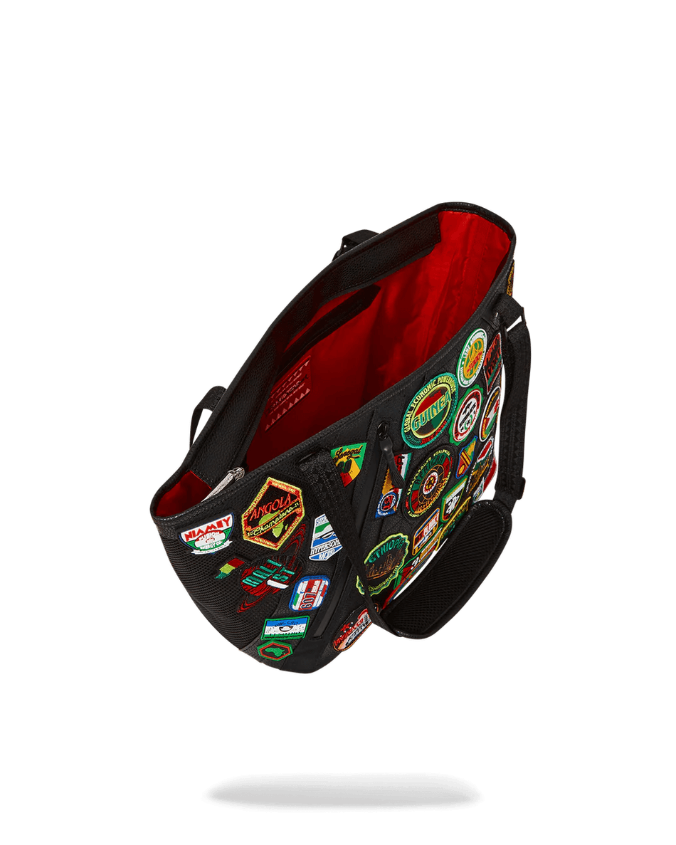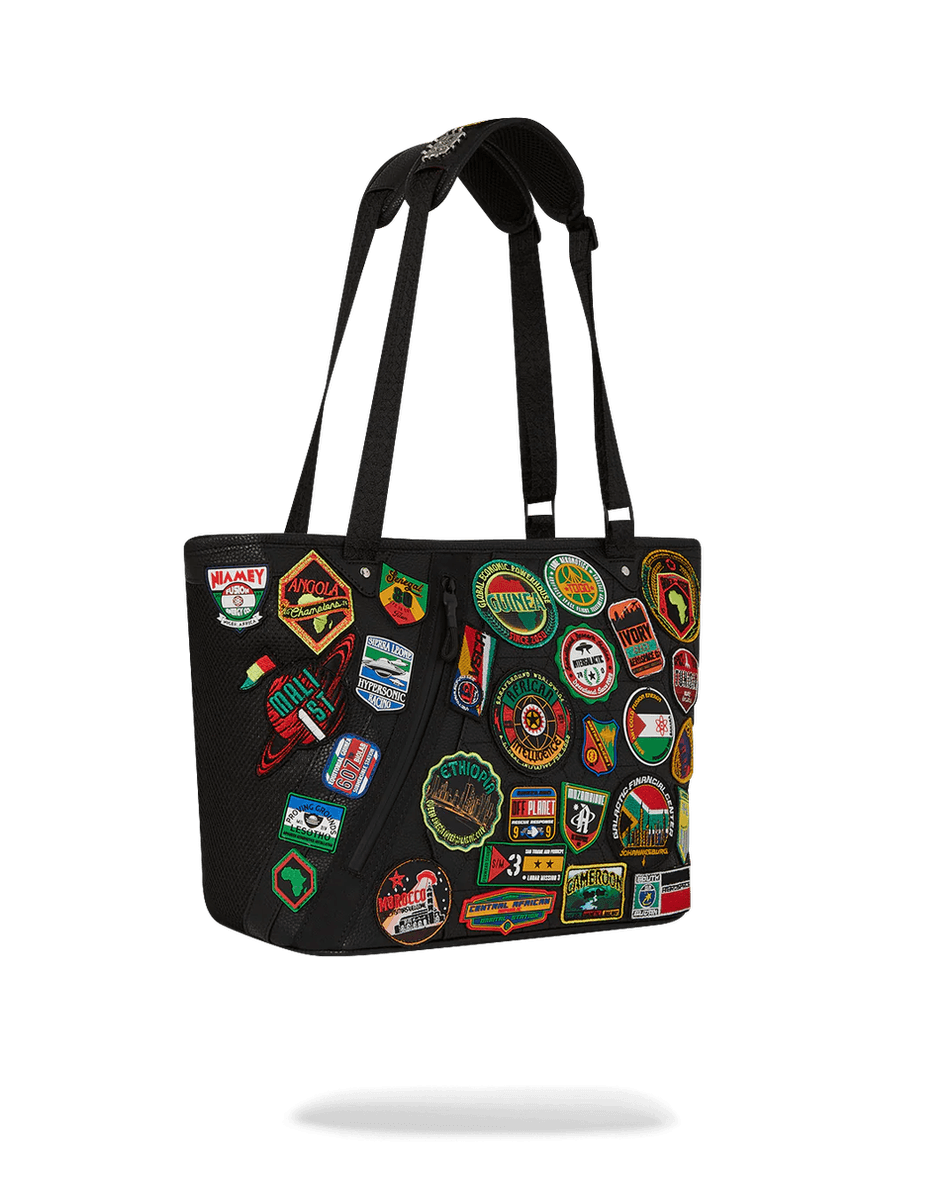 nöj Dig Inte Med Tråkiga Väskor—gör Ett Statement Med Sprayground A.i. The 54 (patches Of Africa) Cargo Tote 99000. Shoppa Nu Och Bär Med Dig En Bit Av Afrikas Arv!