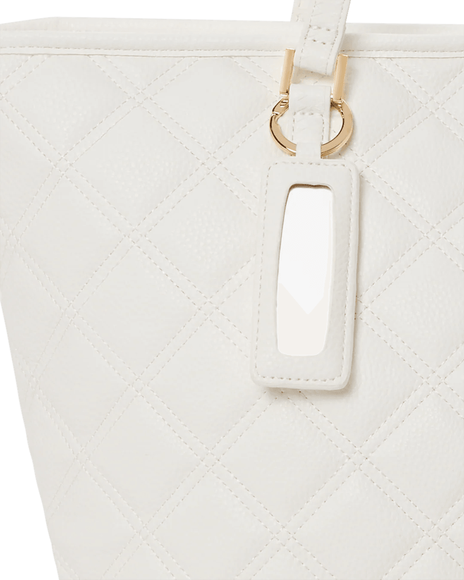 sprayground Riviera Le Blanc Gold Chain Shark Tote 99000 Kombinerar Funktionalitet Med Hög Mode. Dess Dubbla Nål Diamantquiltade Design Kompletteras Av Elegant Gul Metallhårdvara, Vilket Säkerställer Hållbarhet Och Stil. Det övre Dubbla Handtaget Ger En Bekväm Bärmöjlighet, Medan De Slående Guld Dragkedjorna ökar Dess Lyxiga Appell. Denna Tote är Perfekt För Daglig Användning, Oavsett Om Du är På Väg Till Jobbet, Gör ärenden Eller Njuter Av En Dag Ute Med Vänner.