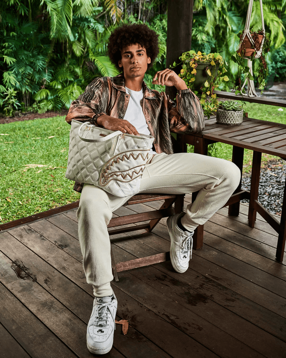 Sprayground Riviera Le Blanc Guld Kedja Haj Tote 99000